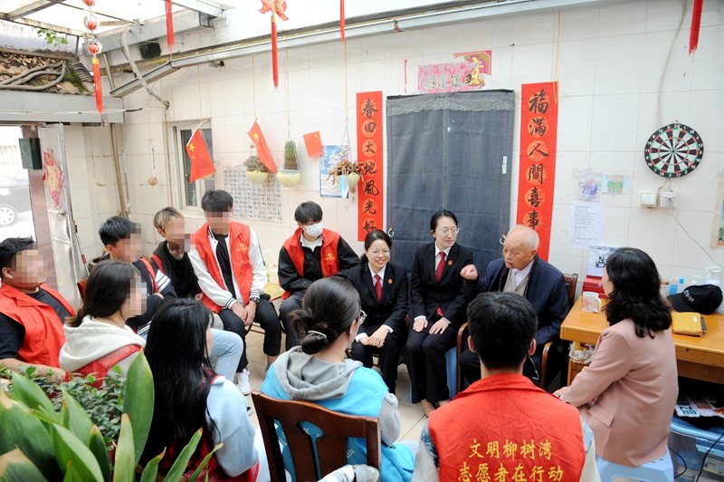 為提高未成年社區(qū)矯正對象的社會責任感和奉獻精神,清江浦區(qū)人民法院聯(lián)合區(qū)司法局開展公益志愿活動。少年家事庭副庭長陳善珊帶領(lǐng)轄區(qū)20余名未成年社區(qū)矯正對象走進社區(qū),看望空巢老人,希望通過這場用愛心架起的“一老一小”雙向奔赴的橋梁,孩子們能靜心思考如何走好人生道路。