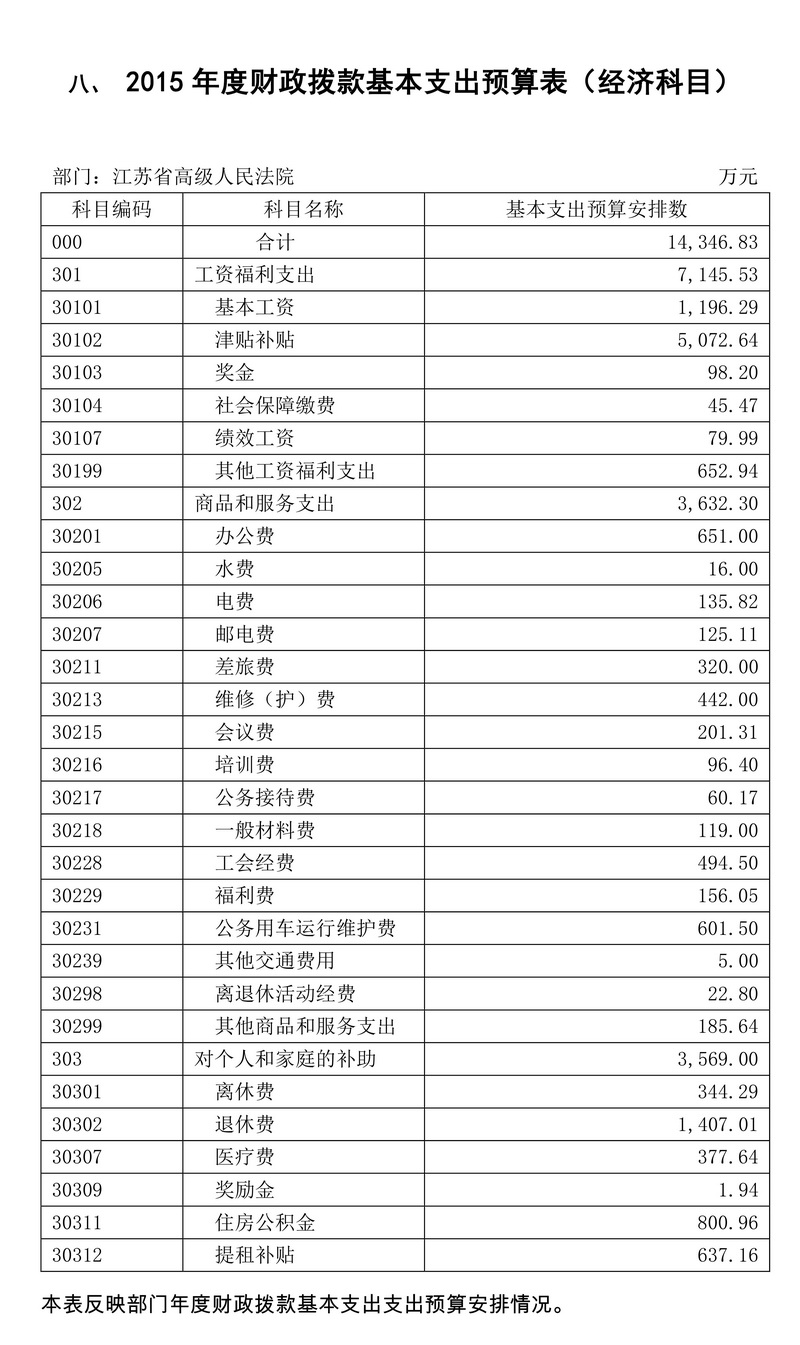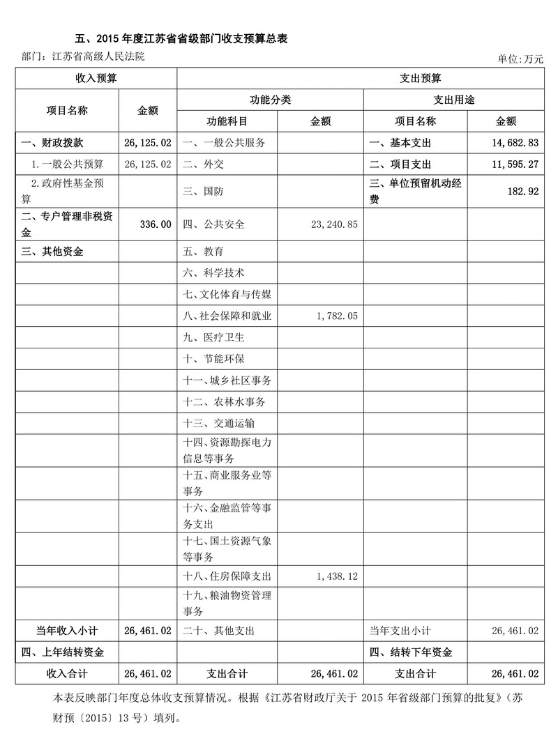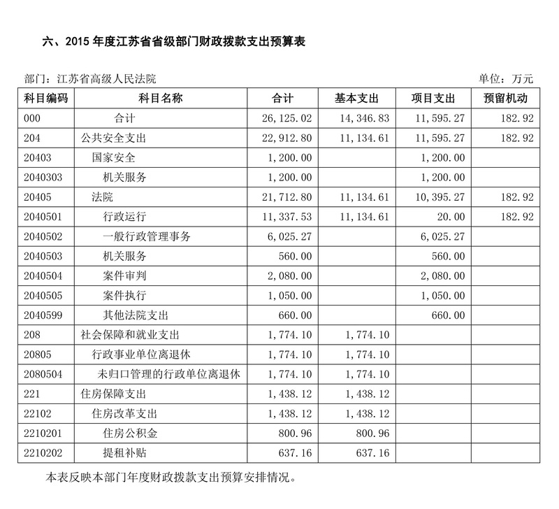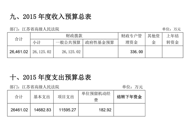 2015年度江蘇省高級人民法院預算公開