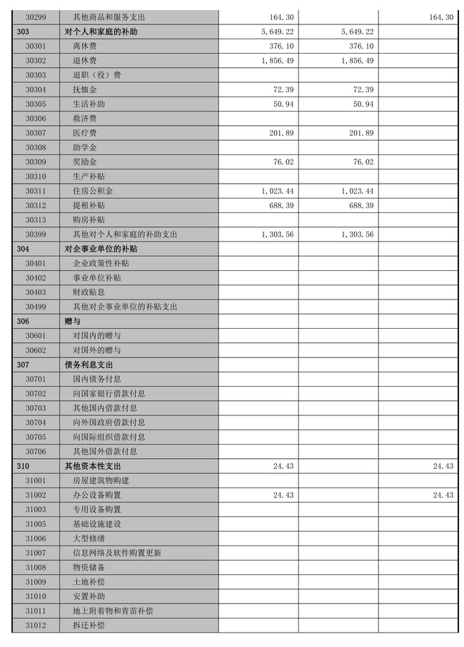 (一)人員經(jīng)費(fèi)13262.77萬元。主要包括:基本工資、津貼補(bǔ)貼、獎(jiǎng)金、社會保障繳費(fèi)、其他工資福利支出、離休費(fèi)、退休費(fèi)、撫恤金、生活補(bǔ)助、醫(yī)療費(fèi)、獎(jiǎng)勵(lì)金、住房公積金、提租補(bǔ)貼、其他對個(gè)人和家庭的補(bǔ)助支出。