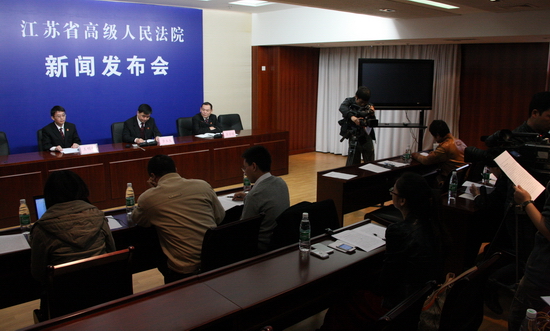 為進一步震懾毒品犯罪行為,凈化社會治安環境,開展毒品犯罪案件集中宣判活動,2013年11月14日,江蘇省高級人民法院召開打擊毒品犯罪新聞發布會。省高院副院長李玉生通報了近年來我省法院審理涉毒案件的基本情況。省高院新聞發言人王明新主持發布會。省高院刑三庭庭長蘇學增參加發布會并回答了記者的提問。