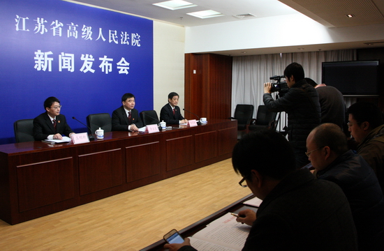 2013年12月12日,江蘇省高級人民法院、江蘇省人民檢察院聯合召開”資源環境司法保護新聞發布會。通報”兩院”《關于依法辦理環境保護案件若干問題的實施意見》、省高院《關于開展資源環境案件”三審合一”集中審判的意見》兩個文件,以及近年來全省法院資源環境案件審理相關情況、全省檢察機關查辦環保領域職務犯罪案件相關情況。江蘇省高級人民法院李玉生副院長、江蘇省人民檢察院陳劍虹副檢察長參加新聞發布會。李玉生副院長現場回答了記者的提問。江蘇省高級人民法院新聞發言人王明新主持新聞發布會。