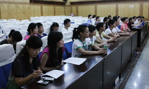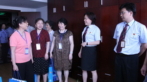 當日上午,代表們饒有興致地參觀了司法鑒定處的搖號工作室,“這機器怎么搖啊?”“號碼球怎么選?”據介紹,省法院司法鑒定處的搖號工作室系2007年全省首創,是參照科技法庭的模式建立的。代表們在法官手把手引導下“體驗”了一把搖號后由衷感慨:“這是實實在在的‘看得見的公正’!”在旁聽完案件的庭審后,南京師范大學社會學系的小朱同學興奮之情溢于言表:“我是第一次旁聽案件,終于知道法官是怎樣審案的。真是太好了!”