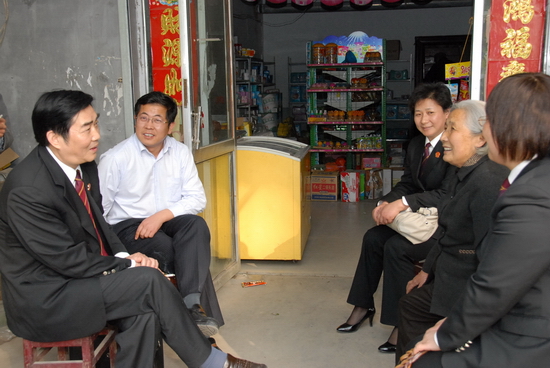 中院黨組成員、機關黨委書記朱閱兵與農民親切交談。(趙德剛)