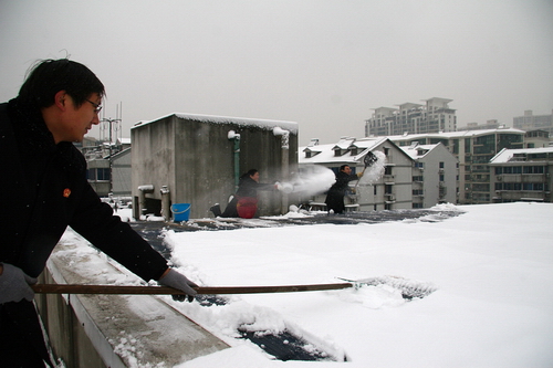 一場紛紛揚揚的瑞雪給人們的生活帶來了情趣,但卻給交通帶來了諸多的不便。1月20日上午,無錫濱湖法院干警早早來到法院,自發拿起掃雪工具,清掃辦公樓四周及臨近青蓮路的積雪。在院領導的帶領下,干警們或掃、或推、或鏟,整個掃雪場景構成了一道亮麗的風景。大家忙碌了一個多小時,才將主干道和臨近青蓮路的積雪清掃干凈,大大方便了前來訴訟的當事人和過往的行人和車輛。