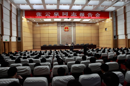 4月27日上午,中央政法委光榮傳統教育全國巡回宣講團成員、江蘇省信訪局原巡視員張云泉在南京以《用憂患意識和責任意識,全心全意做好群眾工作》為題,為江蘇省高級人民法院全體干警和南京法院部分干警作了一場生動感人的事跡報告。江蘇高院黨組副書記、副院長周繼業主持了報告會。