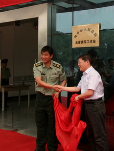 鎮江法院扎實做好涉軍維權工作。全市兩級法院陸續與駐鎮各部隊簽訂和諧共建協議,并在各部隊設立“法律擁軍工作站”。近日,在句容法院法律擁軍工作站揭牌儀式上,鎮江中院茅仲華院長和駐鎮某部隊首長為“法律擁軍工作站”揭牌。