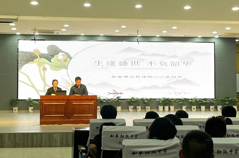 2021年5月10日下午,如皋法院審判委員會專職委員吳劍平走進如皋初級中學,開設《生逢盛世,不負韶華》專題普法課。