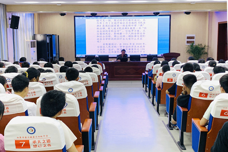 5月10日,磨頭法庭庭長張健到磨頭初級中學開設“《民法典》與未成年人保護”普法專題講座。