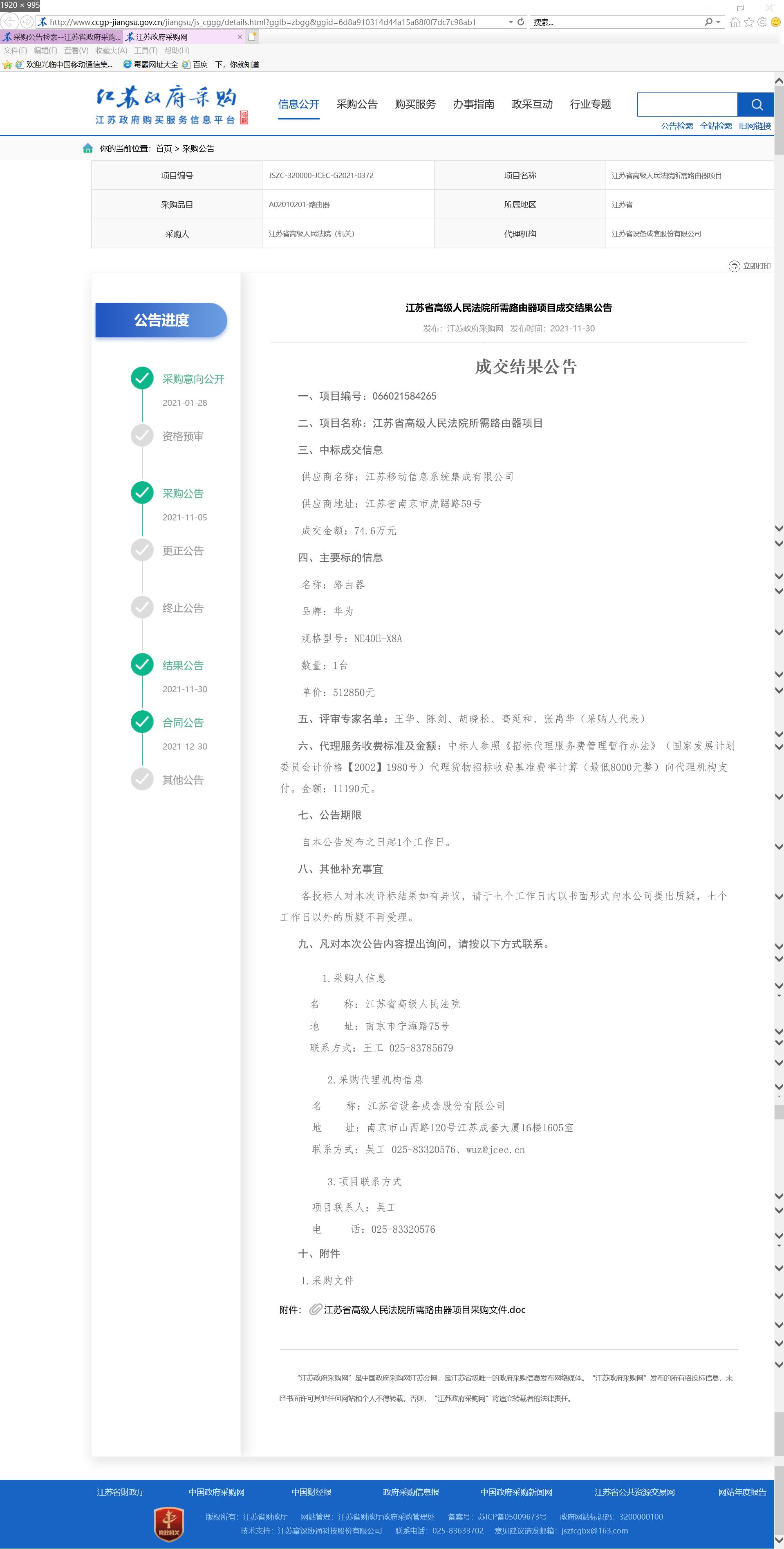 江蘇省高級人民法院所需路由器項目成交結果公告.jpg
